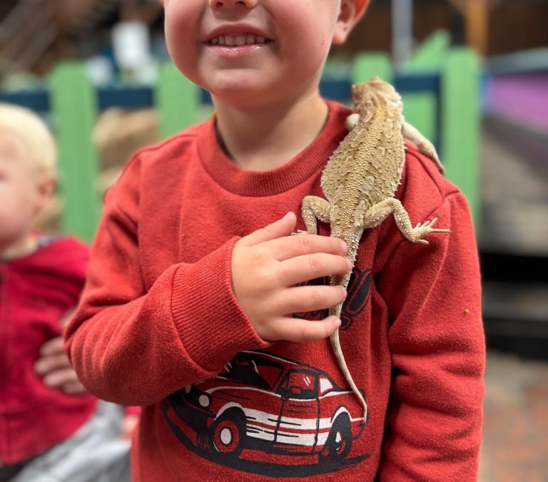 Known for their calm, friendly personalities and striking appearance, these lizards are perfect for up-close encounters. Fun fact: Bearded Dragons can “puff up” their beards to show off or ward off threats, but at our park, they love showing off their gentle, playful side to fascinated little hands. Watching them interact is both fun and educational – a true favourite for families visiting our wildlife experience.