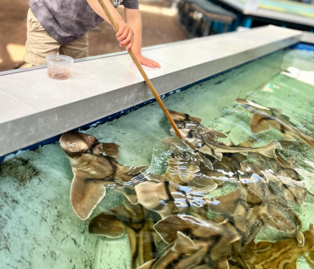 These friendly rays love interacting with people and often swim close to visitors, making them a favorite for feeding and photo opportunities. Watching their smooth, swirling movements is a mesmerizing experience and a highlight for anyone visiting us.